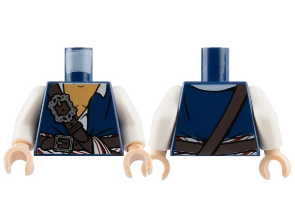 Torso PotC Topcoat with Red and Gold Vest and Dark Bluish Gray Belt Pattern / Black Arms / Light Nougat Hands